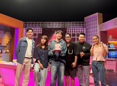 写真にはカン・スンユンの入隊前最後の収録ため、ケーキを持ったカン・スンユンがユン・ジョンシン、イ・サンミン、ミミ、キム・イナとともに団体写真を撮る姿が。明るい笑顔を見ると、普段から仲がいいことが分かる。