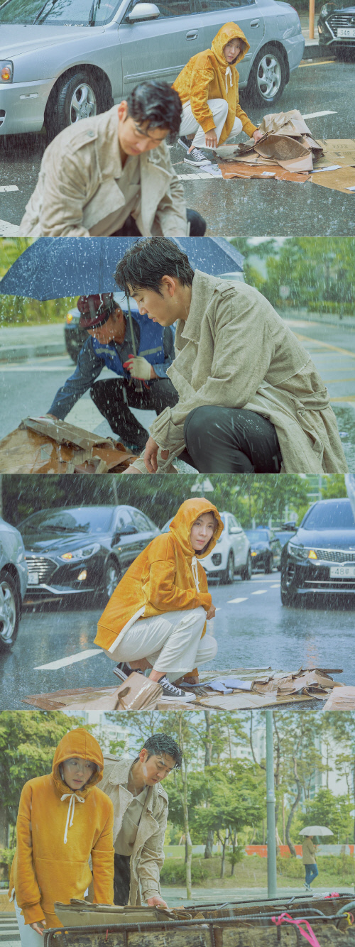 今回公開されたスチールカットでは、事故現場に遭遇したユン・ゲサンとハ・ジウォンがそれぞれのやり方で助けの手を差し伸べる姿が写っている。雨にも関わらず、散らかったダンボールを拾う2人の偶然の出会いがどう描かれるか、興味を誘っている。