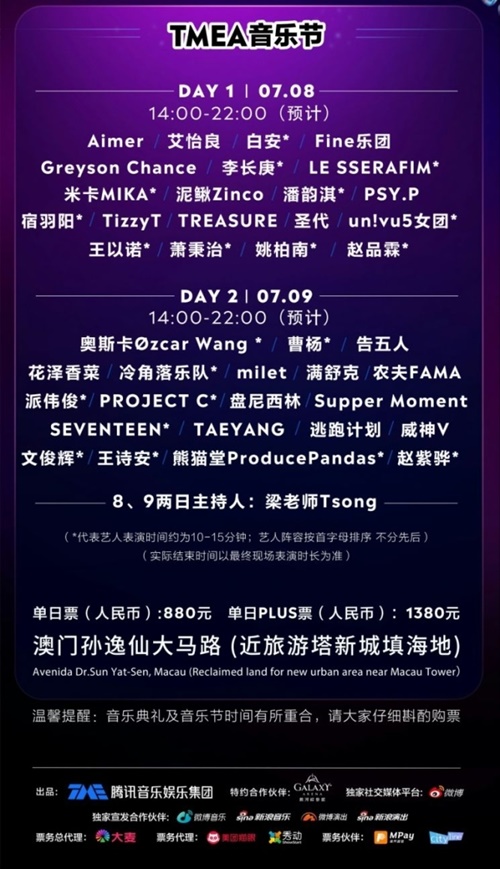 WayVは5人とも中国人メンバーのため違和感はないが、そのほかは韓国人メンバーが含まれている多国籍グループだ。TMEAはマカオで授賞式、フェスティバルが行われる予定で、アーティストの公演時間は10~15分と公示されている。