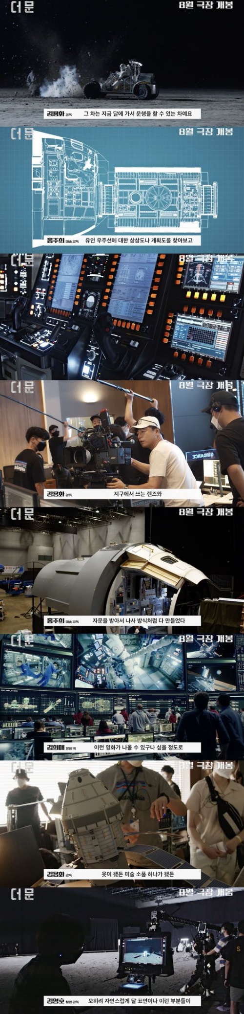 キム・ヨンファ監督は、実際にNASAで使う部品と材質で作った宇宙船の中の基板と操作パネルまでディテール一つひとつに万全を期したと自信を表わした。作品の中に登場する月面車は、「今すぐ月に行って運行できる車」と自信を持って言うほど最強の完成度だとか。