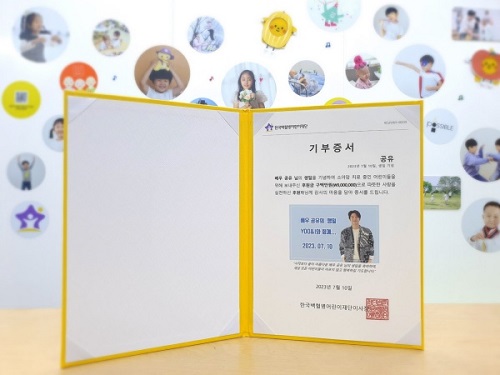“俳優コン・ユ公式ファンクラブYOO & I”は7年にわたって小児がんの子供を支援しており、累計寄付金は8400万ウォン(約840万円)に達する。急性骨髄性白血病と診断された子供を含め、現在まで計10人の小児がんの子供たちに伝達され、経済的な困難なく治療だけに集中できるよう支援された。