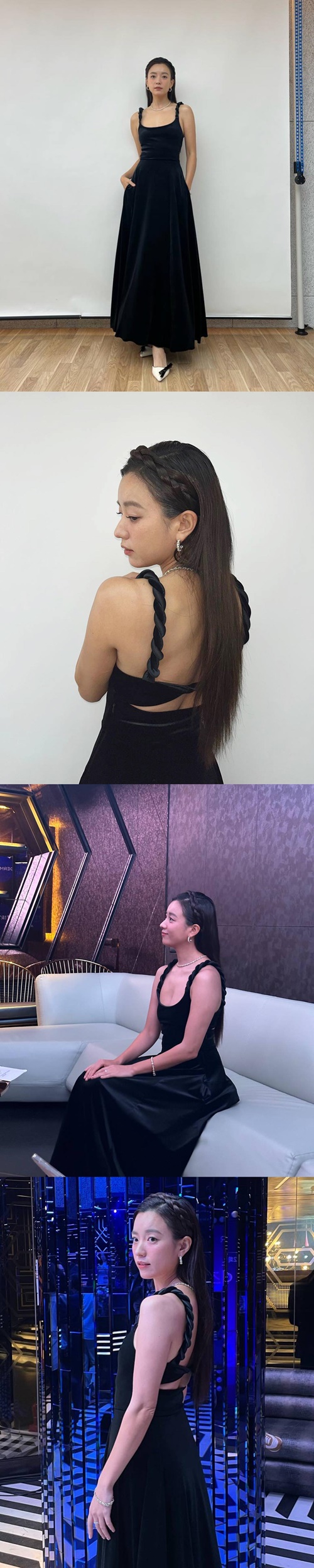 当該の投稿では、ブラックドレスに身を包んだハン・ヒョジュの姿を見ることができる。スリーブ部分を編み上げたデザインによって、大きく開いた胸元と斬新なバックシルエットが強調されているが、清純で高貴なイメージは相変わらずだ。