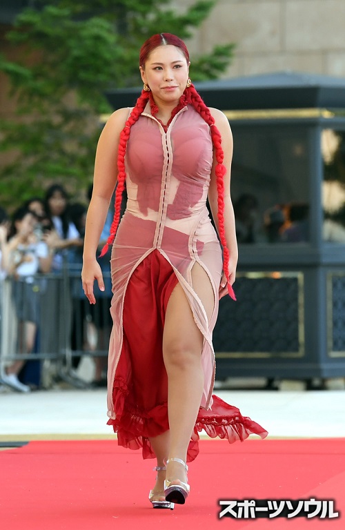 『ザ・グローリー』の熱演が高く評価された女優シン・イェウンは、セミスイートハートトップのAラインドレスでほっそりとしたスタイルを披露した。