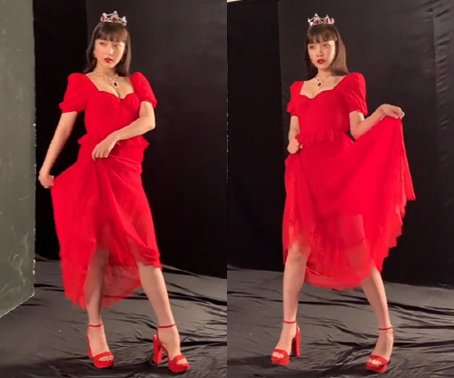 ガールズグループRed Velvet のジョイが強烈なレッドドレスで魅惑的な姿を披露した。