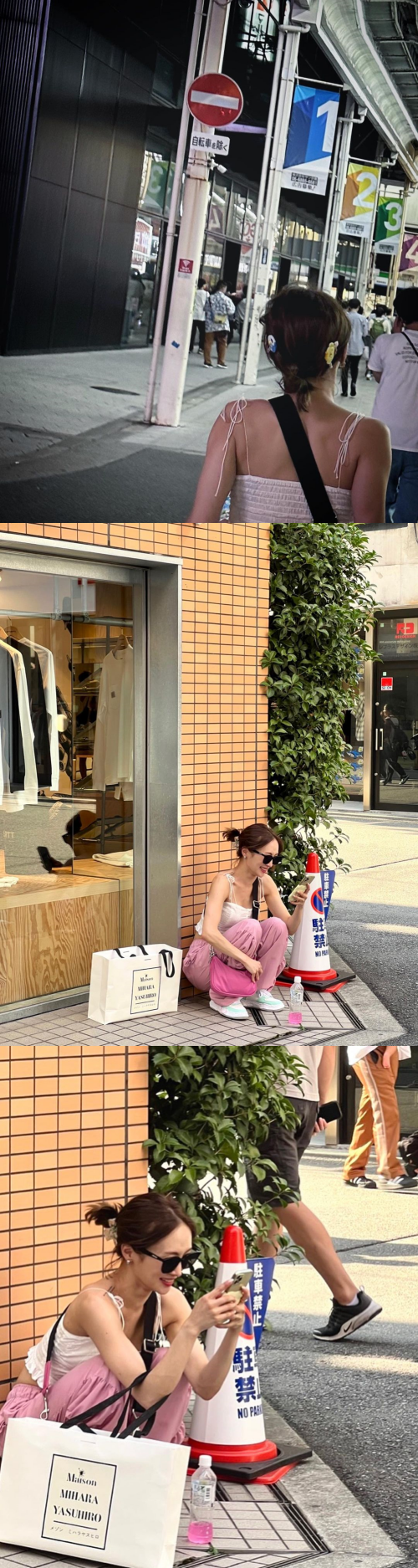 お店の前にしゃがみこみ、携帯を見ながら満面の笑みのニコル。どこにいても芸能人オーラを漂わせている。