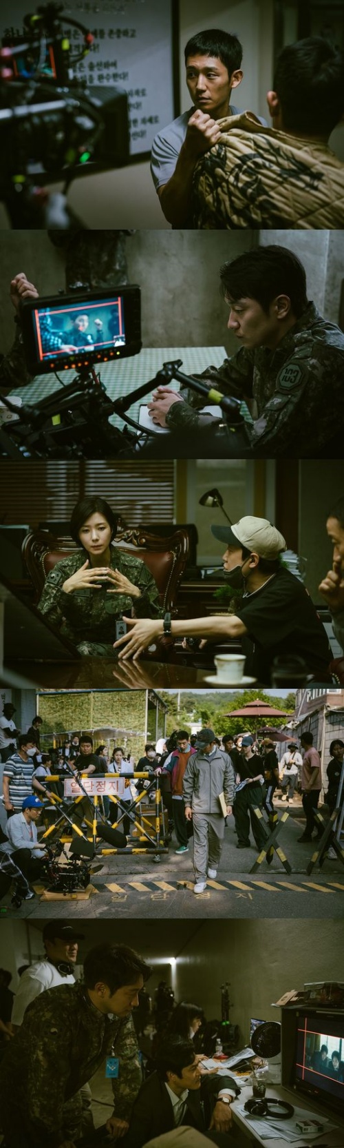 公開されたスチールでは、演技に没頭している俳優と撮影現場を指揮するハン・ジュニ監督の呼吸が目立つ。