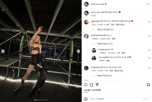 当該の投稿にはファンによる「綺麗でかっこよくて最高」「アメイジングな美しさ」「ロゼはいつだって完璧」といった称賛のコメントが寄せられたことはもちろん、女優キム・ゴウンは「かっこいい、綺麗、わあ~!」と絶賛。X JAPANのYOSHIKI氏も絵文字を駆使して称賛を贈っている。