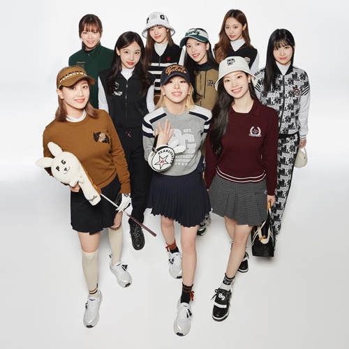 写真を見ると、TWICEのメンバー9人が秋らしい色合いのゴルフウェアに身を包み、笑顔でカメラを見つめている。全員の整えられた顔立ちはもちろん、スポーティーなウェアも完璧に着こなすセンスの良さでファンを魅了した。