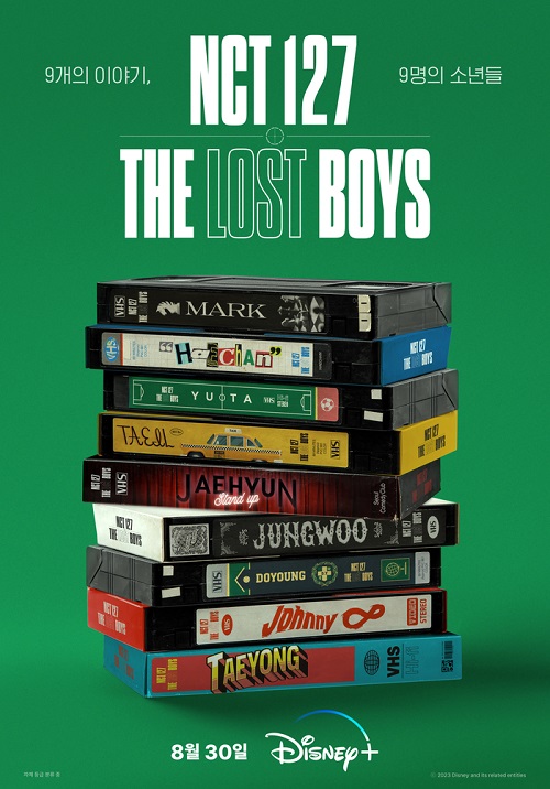 公開されたティーザーポスターは、今回の『NCT 127: The Lost Boys』を通じて見せてくれるメンバー9人の多彩な話を予告するように、ビデオテープがいくつも積まれている。