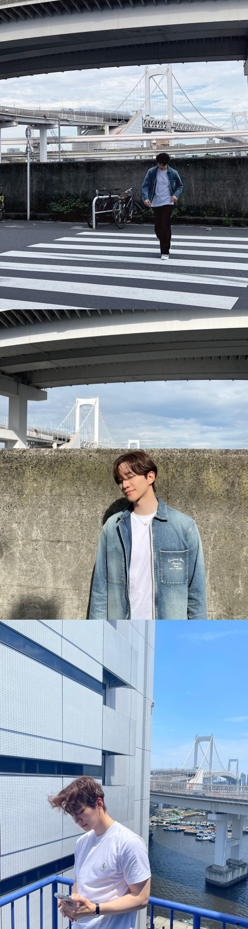 写真には日に照らされるジュノの姿が写されており、後ろにはなんとレインボーブリッジが。日本での写真を公開したのだ。Tシャツからは鍛えられた筋肉質な腕が見え、ベイビーフェイスとその筋肉質な体つきのギャップで目を離せなくさせる。