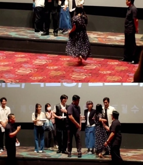 「ハラスメントでしかない」と騒然。パク・ソジュンの舞台挨拶にファンが乱入、突然抱きつかれる