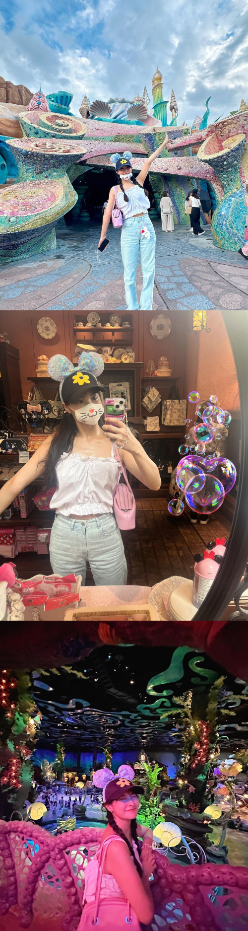 ギュリは8月17日、自身のインスタグラムに「夢と希望の国、ディズニー」とキャプションを綴り、数枚の写真を公開した。
