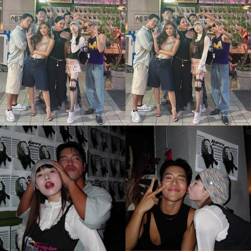 さらに、同日投稿された別の写真では、“韓国のマドンナ”と呼ばれる歌手兼女優のオム・ジョンファの誕生日を祝う姿も。集合写真にはオム・ジョンファやヒョナのほかにMAMAMOOのファサの姿も収められている。