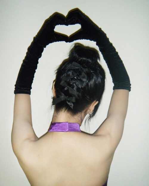 モモは8月24日、自身のインスタグラムに紫色のハートだけ綴り、数枚の写真をアップした。