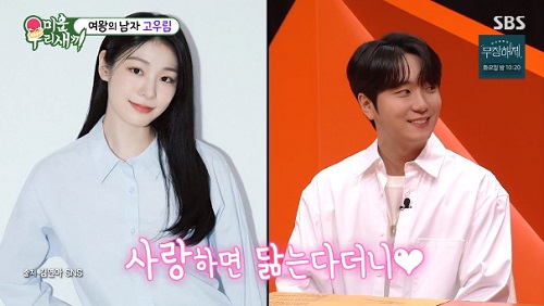 コ・ウリムは「ひとまず僕が年下男(5歳年下)なので、真正性が落ちるのではないかと心配した。ところが、通りすがりに聞いた言葉を思い出した。“勇気ある者が美人を得る”と。自然な雰囲気で会ってみようと話した」と伝えた。最終的に2人は3年余りの交際の末、結婚するに至った。