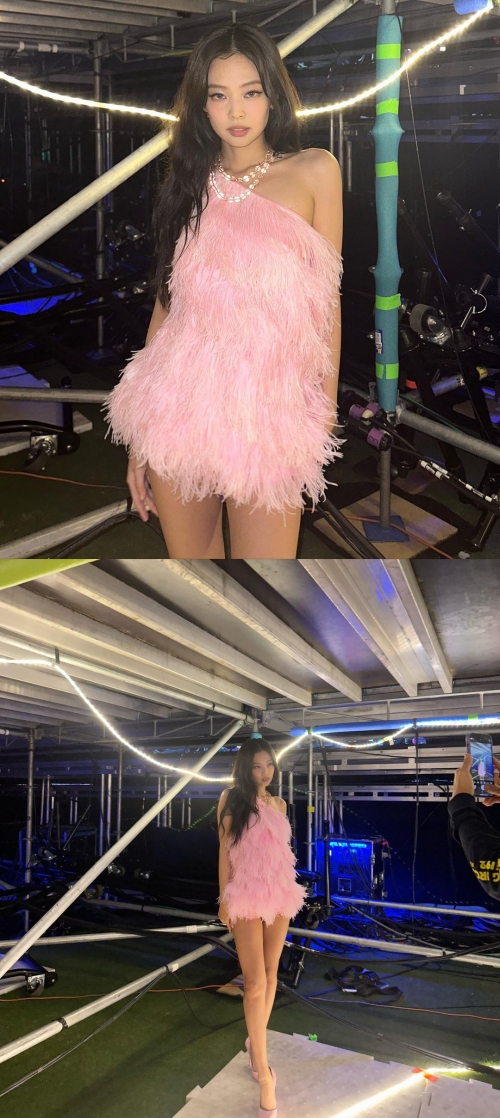 「全身から色気出てる」BLACKPINK・ジェニー、ピンクのファー衣装姿で“圧巻の脚線美”【PHOTO】