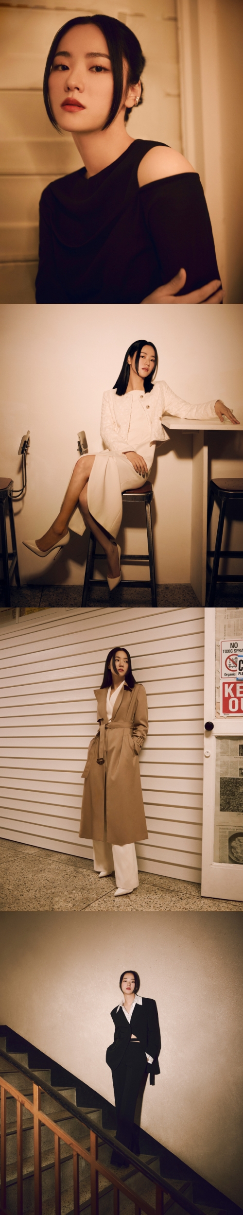 公開されたカットの中のチョン・ヨビンは、クラシックなアイボリーセットアップを着用。魅惑的でフェミニンな美しさを見せたかと思うと、スーツアイテムでマニッシュながらも感覚的なスタイリングを披露しており、この他にもワンピース、トレンチコートなど、秋の季節感を完璧に演出した。