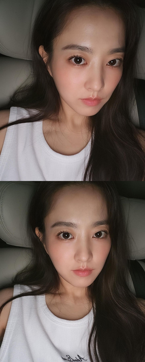 写真には車の中で自撮りをするパク・ボヨンの姿が。明るいフラッシュをたいた“超接写”での撮影にもかかわらず、欠点ひとつない美肌が輝いている。大きな目とすっと通った鼻筋が目を引く。