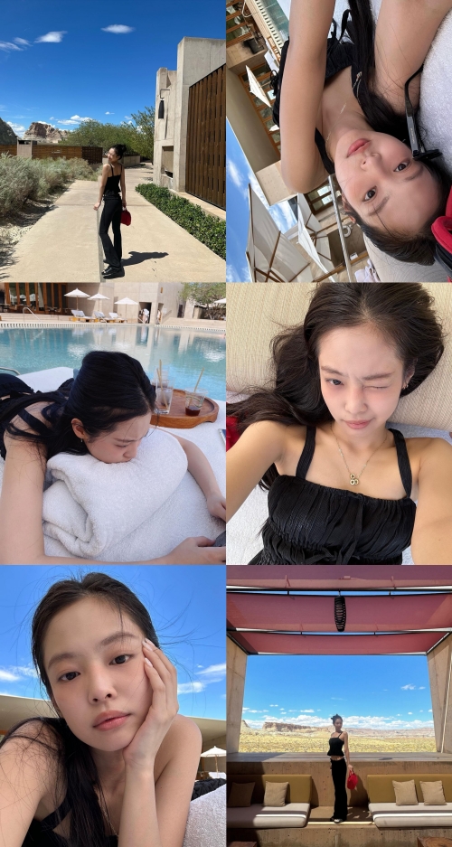 写真には、リゾート地でリラックスした時間を過ごすジェニーの姿が写っている。