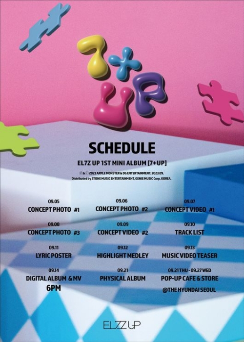 EL7Z U+Pは公式SNSを通じて、デビュースケジュールイメージを公開。このスケジュールによると、EL7Z U+Pは初のミニアルバム『7+UP』で9月14日にデビューするという。