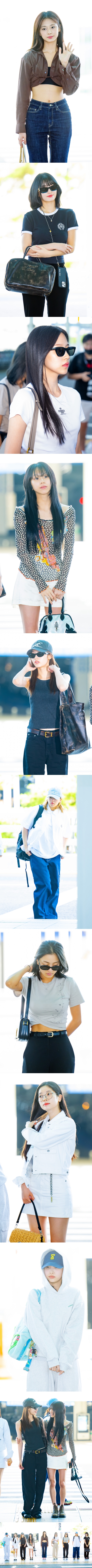 仁川国際空港を訪れた9人(ナヨン、ジョンヨン、モモ、サナ、ジヒョ、ミナ、ダヒョン、チェヨン、ツウィ)はそれぞれカジュアルなコーディネートで自然体な魅力を発揮している。