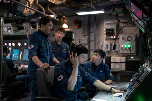 そして、本作の物語のカギを握る海軍潜水艦「ハルラ」の乗組員で、鋭い聴覚を生かして水中の音響情報を分析・識別する海軍潜水艦音響探知下士官のチョン・テリョン(演者チャ・ウヌ)の凛々しい姿も披露されている。