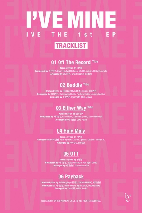 グループIVEが最初のミニアルバム『I'VE MINE』のトラックリストを公開した。