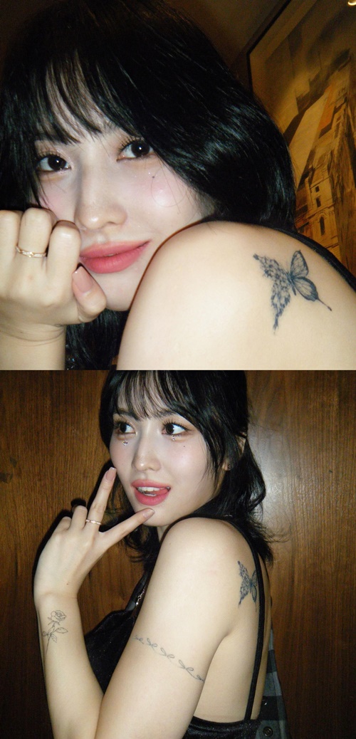 モモは最近、自身のインスタグラムにソロショットを数枚投稿。手首、腕、背中にタトゥーが施された姿で注目を集めた。