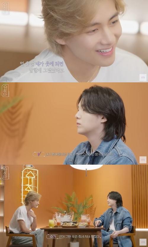 「EP.18 SUGA with V」というタイトルの映像で、SUGAはメンバーのVと話を交わした。