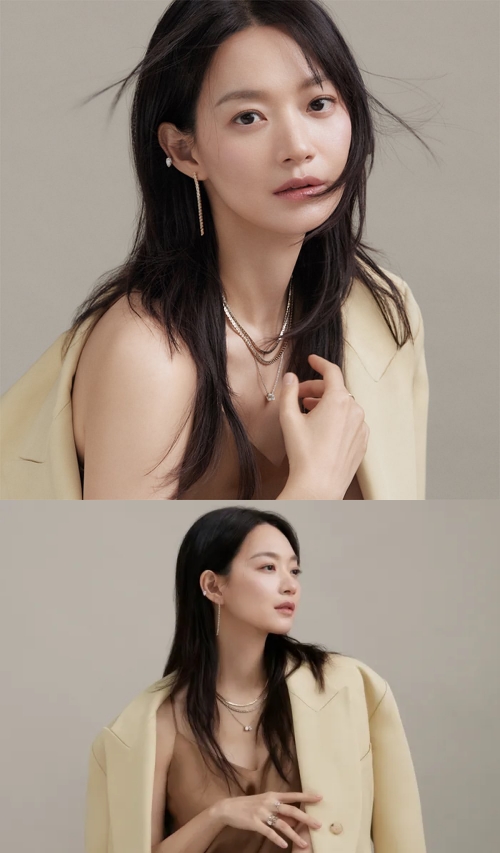 写真の中のシン・ミナは、上品な笑顔を浮かべている。繊細な輝きを放つジュエリーをまとい、可憐なイメージを与えた。