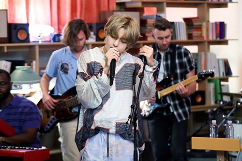 Vは9月15日に公開されたユーチューブ音楽番組『Tiny Desk Korea』で、ソロアルバム『Layover』から『Slow Dancing』『Love Me Again』『For Us』の3曲を熱唱。特に、『For Us』は今回が初公開となった。