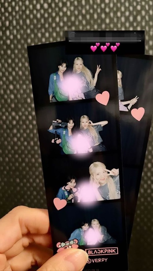 コ・ソヨンはBLACKPINKのペンライトを持ったままポーズを取っており、ロゼもハートポーズなどを取りながら優しいツーショットを演出した。