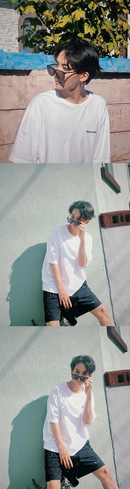 白いTシャツにハーフパンツを合わせ、サングラス越しに可愛らしいまなざしをカメラに向けるジョンハン。雑誌のワンカットのようなビジュアルには、多くのファンが熱い反応を示した。