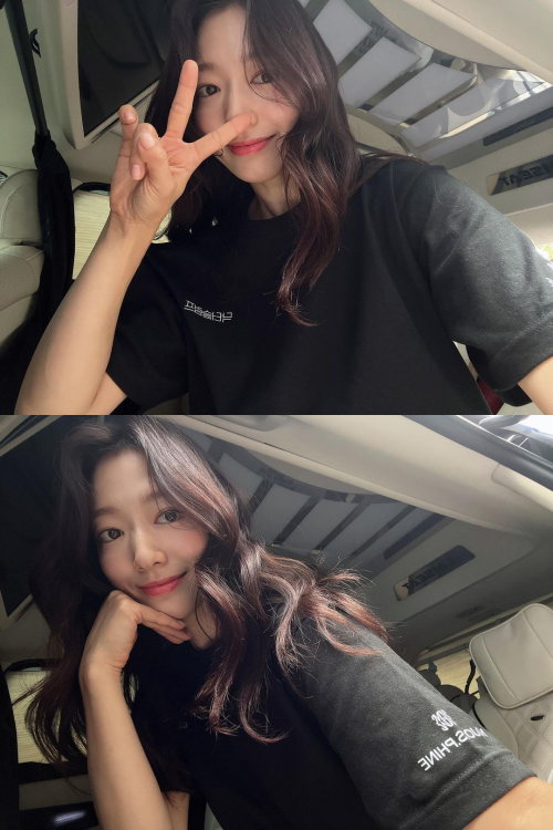 写真には、現在撮影中のドラマ『ドクタースランプ』のTシャツを着たパク・シネの姿が。髪をゆるく巻き、ピースをするパク・シネ。その姿はまるで学生のように爽やかだ。デビュー時から全く変わらないと評価を受けているパク・シネだが、今回もその“童顔”ぶりを見せつけた。