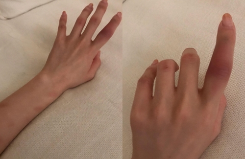 ハン・ソヒは去る12月12日、インスタグラムに知人と交わしたメッセンジャーのトーク内容と自身の手の写真を公開した。写真に写るハン・ソヒの左手は痣だらけで、人差し指は大きく腫れあがっている。