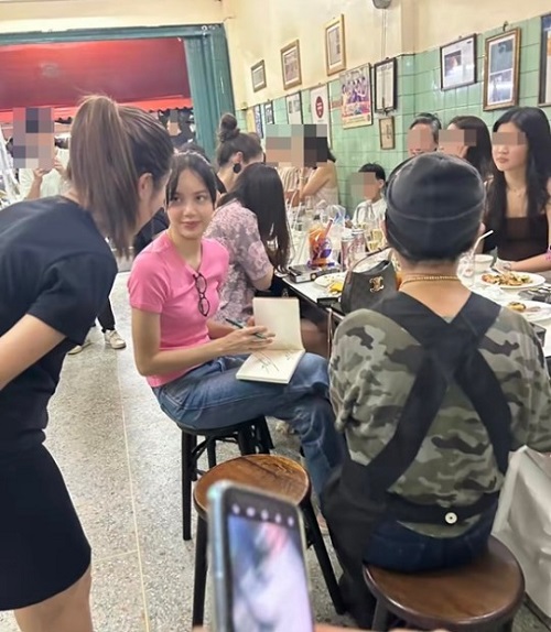公開された写真でリサは、ピンクの半袖にジーンズとラフな格好。タイのレストランで食事中、ファンにサインをしてあげている。ファンへの愛が感じられるリサの行動だが、より注目を集めたのは彼女と一緒にいる人物だ。