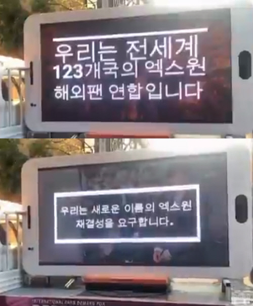 One Itはトラックに大型スクリーンを設置し、そこに自分たちの意を込めた動画を映し出しながら、X1メンバーたちの個別の所属事務所の前で活動した。