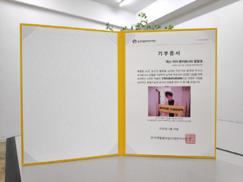 EXOのカイのファンコミュニティがカイの誕生日を記念して、韓国白血病こども財団に小児ガン治療費500万ウォン(約50万円)を寄付した。