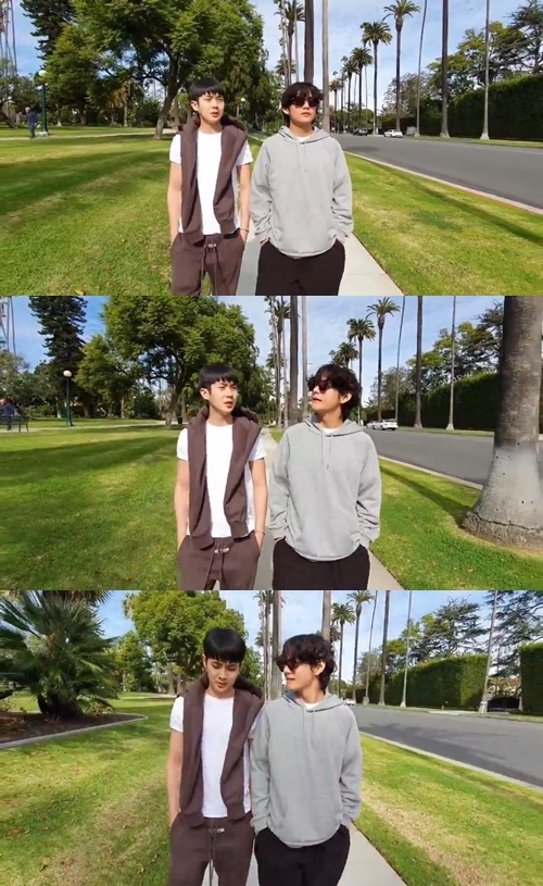 Vは去る1月20日、BTSの公式ツイッターに「ウシクさん、SAGおめでとう」と書き込み、チェ・ウシクと共にLAの街を散策する映像を公開。