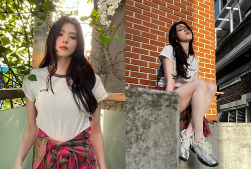 写真の中のハン・ソヒは白いシャツにショートパンツ姿。長い髪を垂らして赤いチェックのシャツを束ねて、大学の新入生のように初々しい。