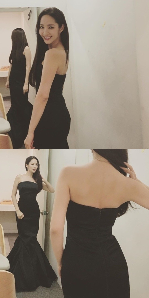 『キム秘書』パク・ミニョンの“美背中”が話題! どこから見ても完璧なブラックドレス姿【PHOTO】