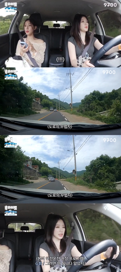 ガールズグループ(G)I-DLEのメンバー、シュファとミヨンが逆走する車を目の当たりにした。