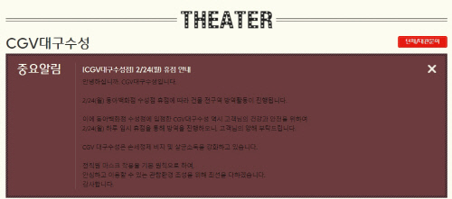 CGVは全映画館を対象に防疫と消毒が完了しており、ロッテシネマは感染者の動線に近い1km以内の劇場に消毒を実施し、状況対応チームを運営するなどの措置をとった。メガボックスは、サンアム・ワールドカップ競技場店に熱画像カメラを設置して運営している。